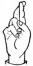 На ћирилици написано ПРЕДРАГ ВРХОВАЦ састоји се из 14 слова [?]. Исписано ћириличном једноручном азбуком за глувонеме: